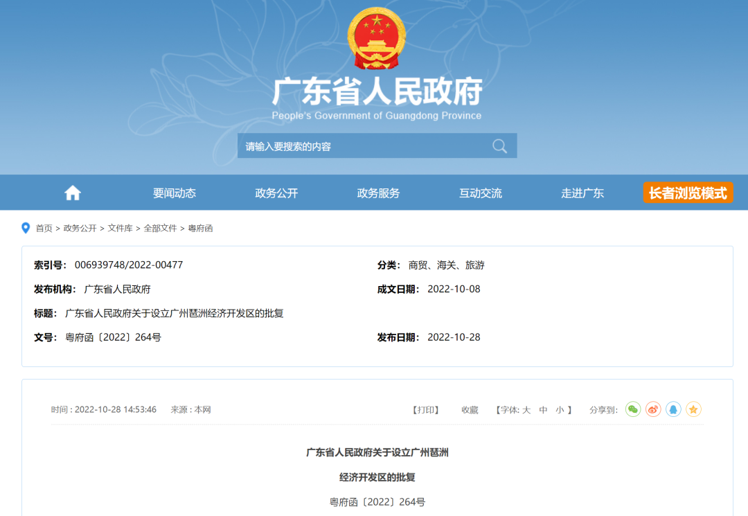 《批复》同时提出,省商务厅要会同有关部门加强指导和服务,营造良好的政策环境,促进广州琶洲经济开发区高质量发展。