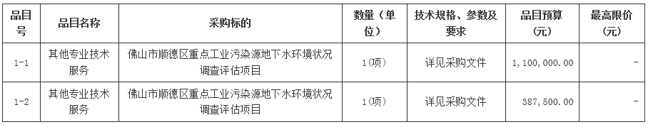 合同包1(佛山市顺德区重点工业污染源地下水环境状况调查评估项目):