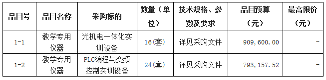 项目名称:佛山市高明区高级技工学校光机电一体化实训设备与PLC实训室设备项目采购
