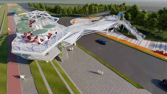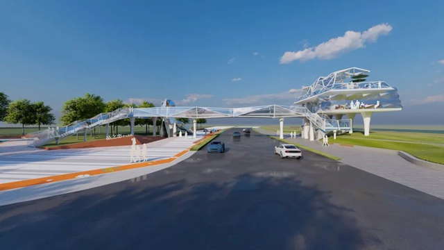 红星天桥项目跨东平路,北接保利碧桂园天汇,南邻东平水道,将打造成集休闲娱乐、交流观赏、艺术摄影于一体的多功能的城市公共空间,实现过街行人和车辆分层通过,进一步提高道路通行能力及保障行人行车安全。