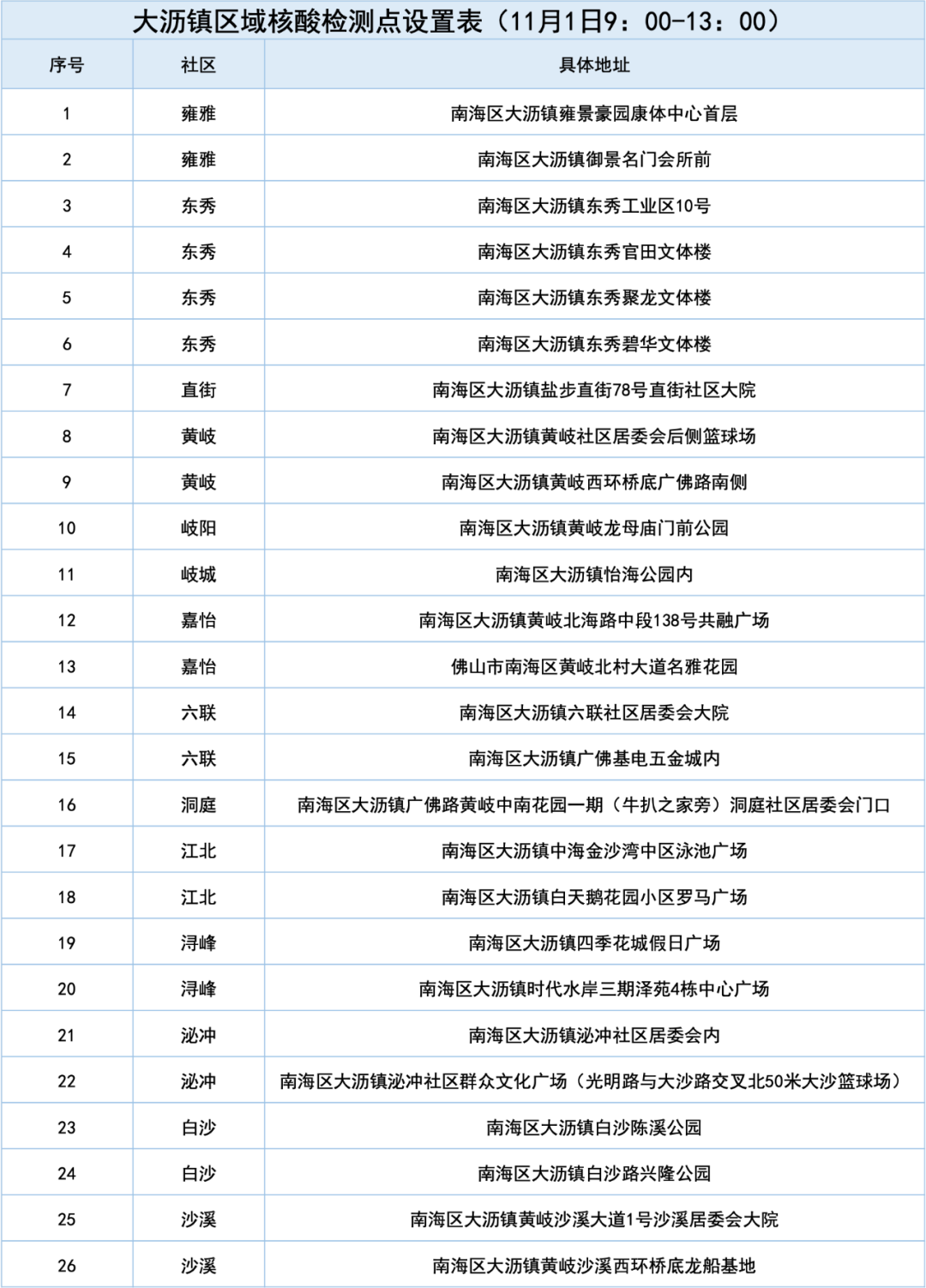 七、11月1日勒流街道所有外市来(返)佛便民核酸采样点将暂停开放。