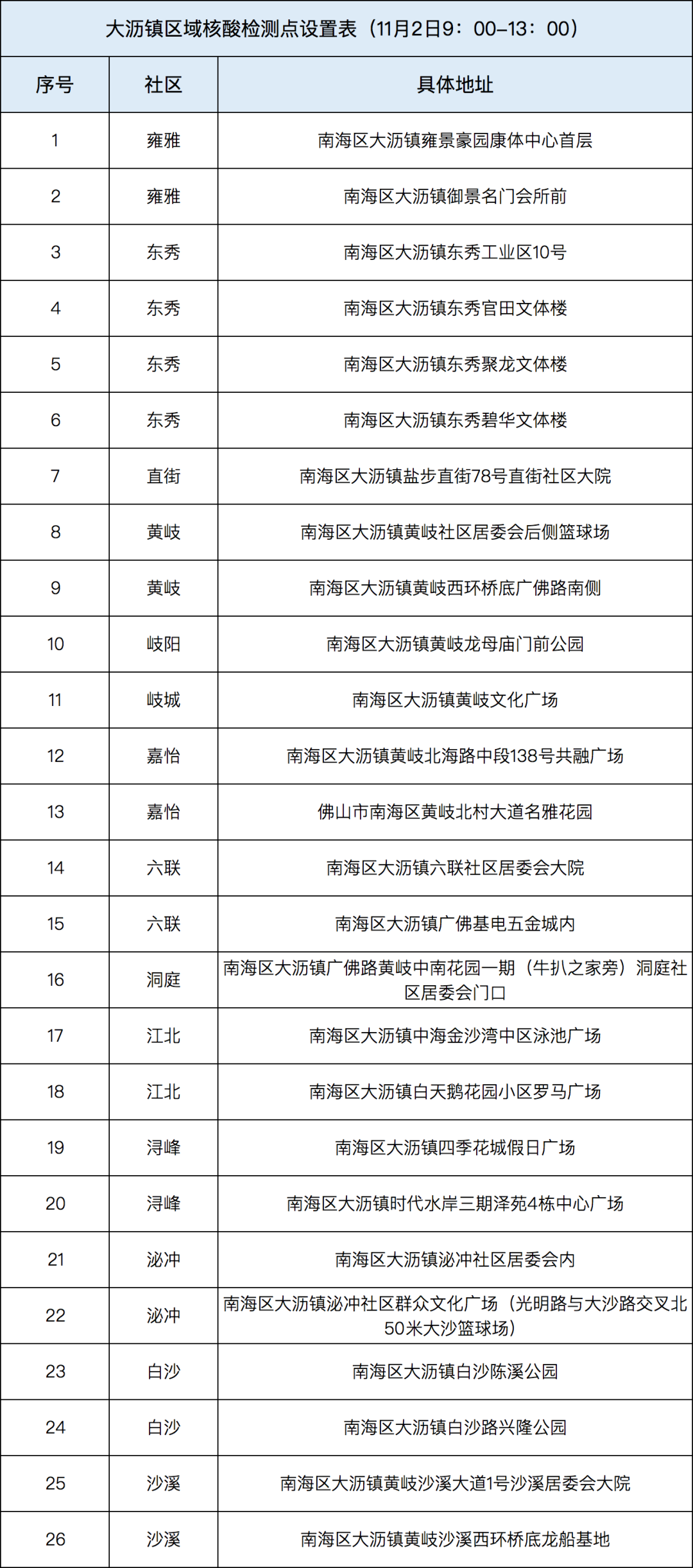 根据《顺德区关于继续调整临时管控区域的通告》,为做好红岗社区临时管控区域解除后群众进出的疫情防控服务,决定自11月2日8时起在该片区设置5个疫情防控服务点。具体如下: