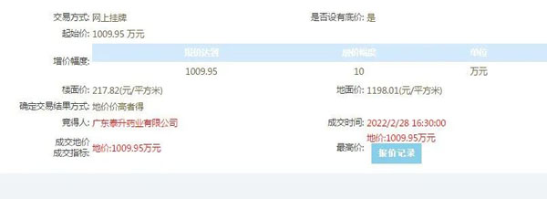 广东泰升药业有限公司竞得映月新城一地块。资料图片