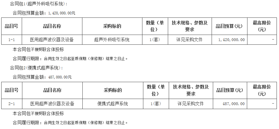 合同包1(超声外科吸引系统)特定资格要求如下: