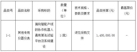 佛山科学技术学院面向智能产线的协作机器人通用算法试验平台及系统建设(二次)招标公告