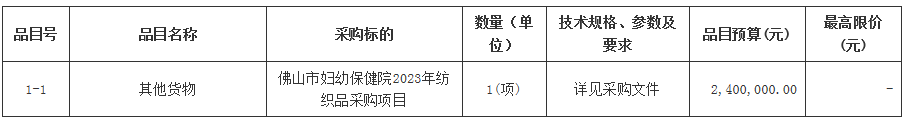 项目名称:佛山市妇幼保健院2023年纺织品采购项目