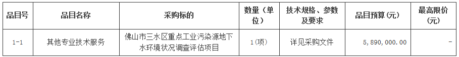 佛山市三水区重点工业污染源地下水环境状况调査评估项目招标公告