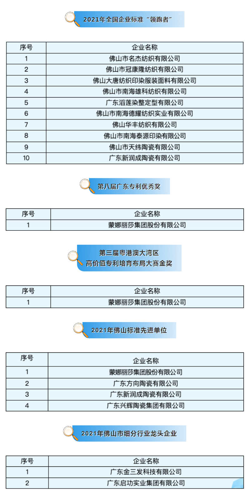 2月21日,佛山市生态环境局发布佛山市生态环境监督执法正面清单。其中,西樵共有5家企业入选,分别是蒙娜丽莎集团股份有限公司、广东新润成陶瓷有限公司、广东兴辉陶瓷集团有限公司、佛山市天纬陶瓷有限公司和佛山市新联发陶瓷有限公司。