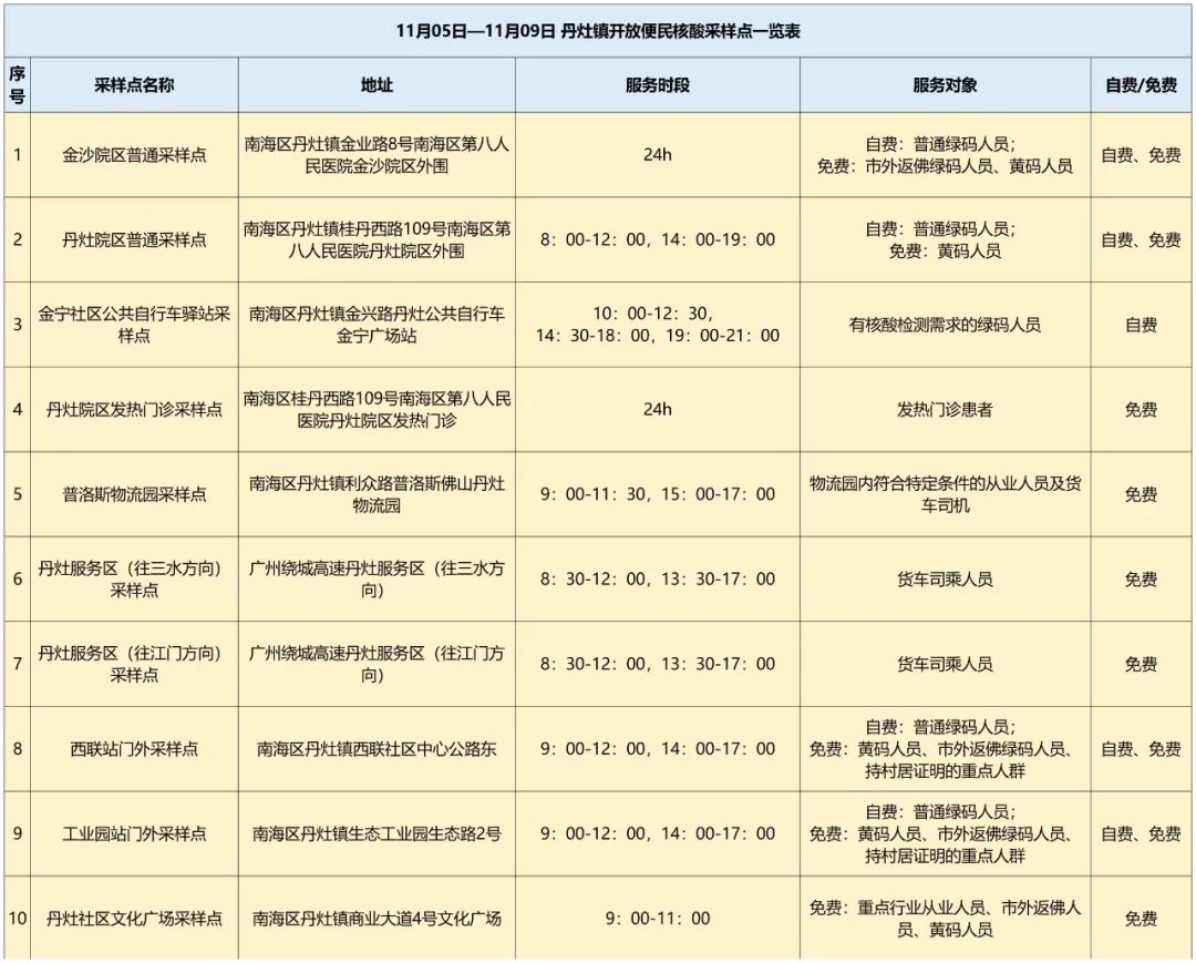 南海丹灶11月5日-9日便民核酸采样点、疫苗接种点开放→