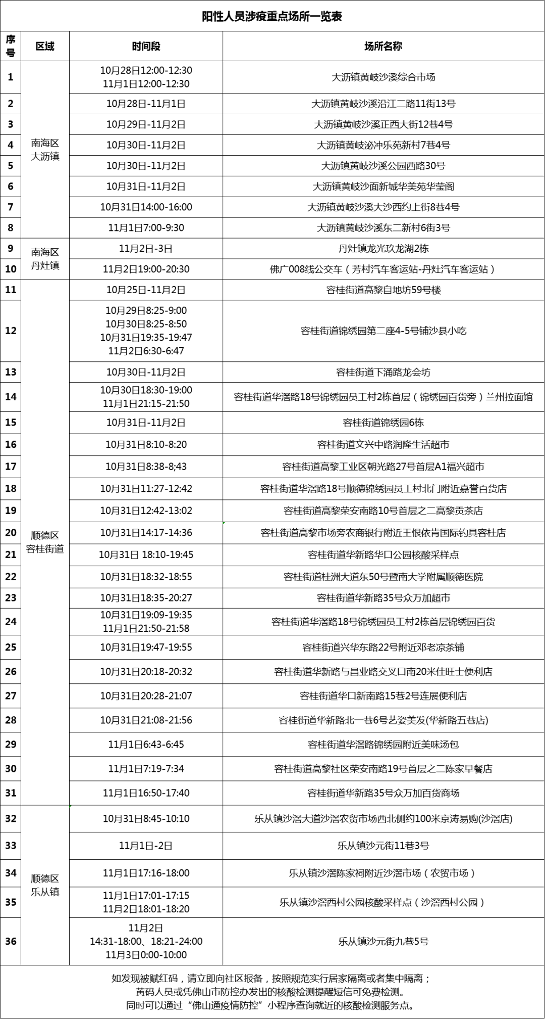 个案6居住在南海区大沥镇,11月2日我市接外市协查通报后纳入隔离管控,11月3日核酸检测阳性。