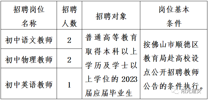 顺德区均安镇文田初级中学2022年招聘编制教师公告