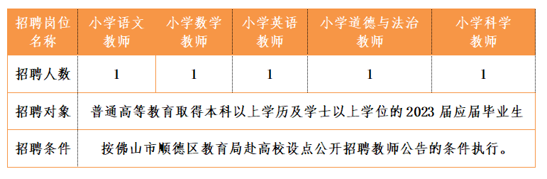 说明:本次招聘是顺德区教育局统一组织的第一批招聘,具体安排另行通知。后续将会有第二批招聘,请关注“绿色陈村”微信公众号的招聘信息。