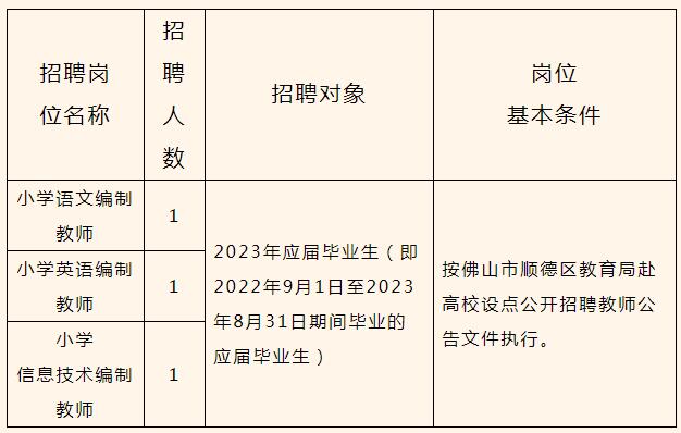 3.报名截止时间:参照顺德区教育局统一招聘公告。