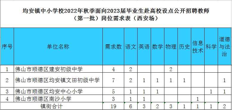 顺德均安将赴高校设点公开招聘教师19人(西安场)!正式编制!
