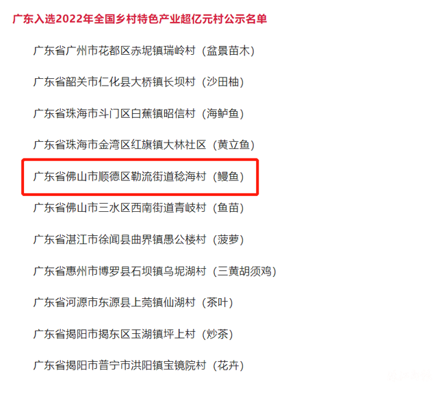 顺德勒流稔海入选2022年全国乡村特色产业超十亿元镇超亿元村