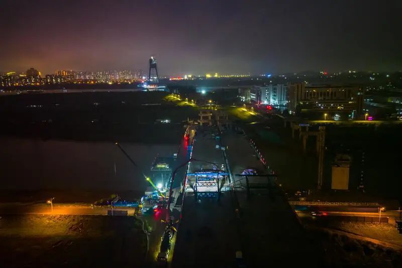 当晚23点,施工桥梁上灯火通明,传出一阵阵水泥浇注机的运转声。经过4小时不间断作业,施工人员在长18米、宽2米的“接口”处顺利完成了39.9立方米混凝土的浇筑,至此,塘西三期及南延线工程首座连续梁全桥合龙。