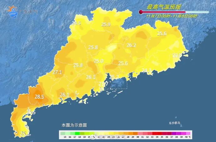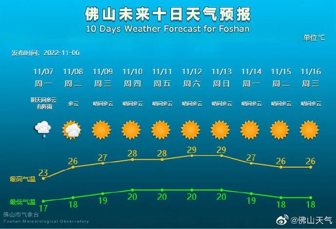 11月9日到16日,晴间多云,气温在18℃~29℃之间。