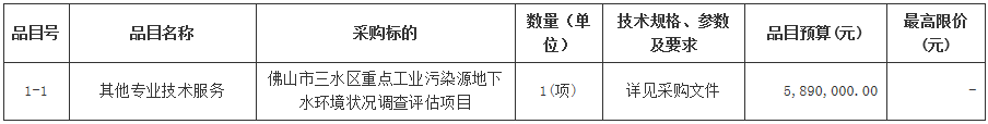 合同包1(佛山市三水区重点工业污染源地下水环境状况调查评估项目):
