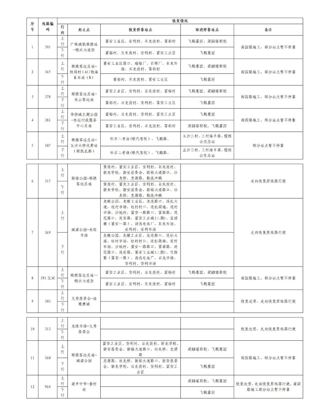 此外,顺德区大良街道和勒流街道部分管控区交通管制结束,自11月6日起,佛山市顺德区大良街道和勒流街道部分管控区(广佛江珠高速以东、公路涌-伦教大涌一线以南、大良河-银涌河一线以西、顺德支流-新明水道以北围合区域)部分公交站点恢复停靠,通告如下:
