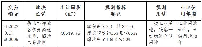佛山市禅城区佛开高速东侧、塱沙二路北侧地块网上挂牌出让公告