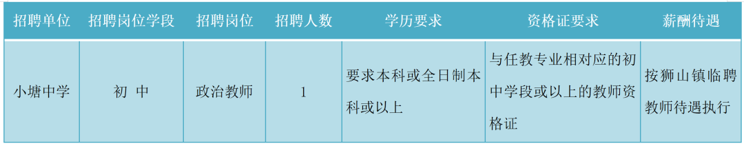 本次招聘岗位共1个,(初中政治代课教师1名)