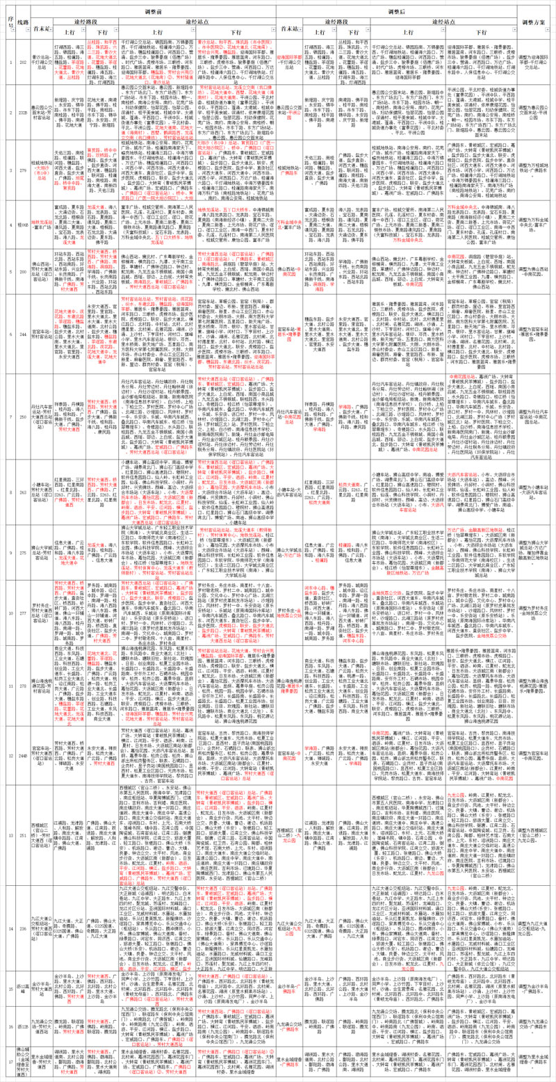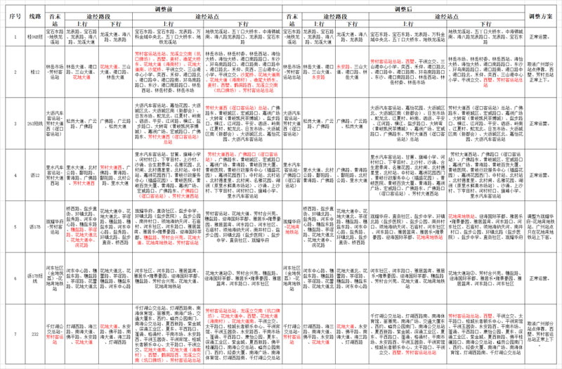 三、公交桂12、沥12等7条线路正常进入广州区域,部分线路实施临时飞站(详见下表)。