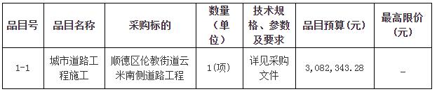 合同包1(顺德区伦教街道云米南侧道路工程):