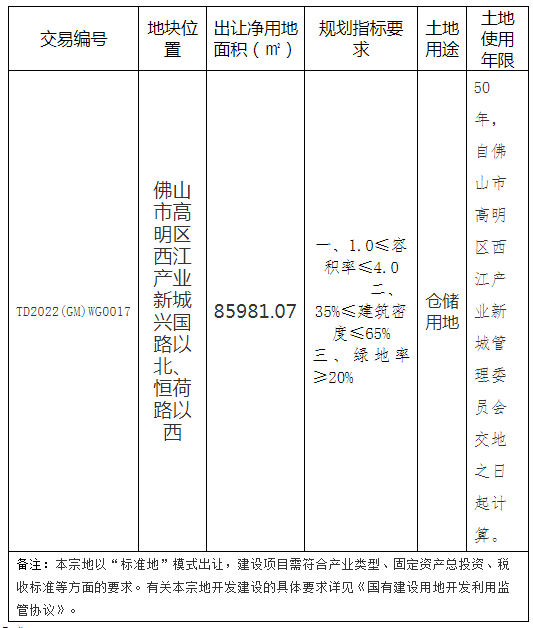 十、自本次公告起至网上挂牌截止期间,如有关于本次地块网上挂牌文件的修改、澄清、说明等将通过网上交易系统、佛山市公共资源交易网发布,请有意参与竞买者密切留意。其它未尽事宜,详见该地块的交易文件。