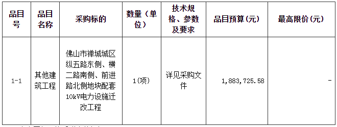合同包1(佛山市禅城城区纵五路东侧、横二路南侧、前进路北侧地块配套10kV电力设施迁改工程):