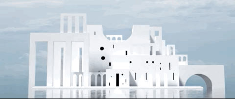 一座神秘、宏伟的建筑跃然于海,