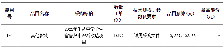 项目名称:2022年乐从中学学生宿舍热水淋浴系统改造项目