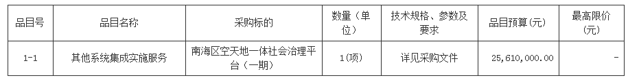 项目名称:南海区空天地一体社会治理平台(一期)