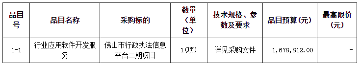 项目名称:佛山市行政执法信息平台二期项目