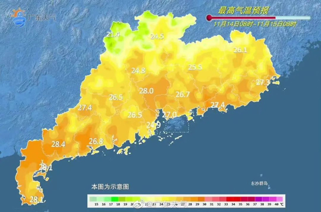 14日,大部分市县多云到阴天,其中雷州半岛有短时小雨;大部分市县气温小幅下降。最低气温:粤北市县14℃~18℃,其余大部市县19℃~23℃。