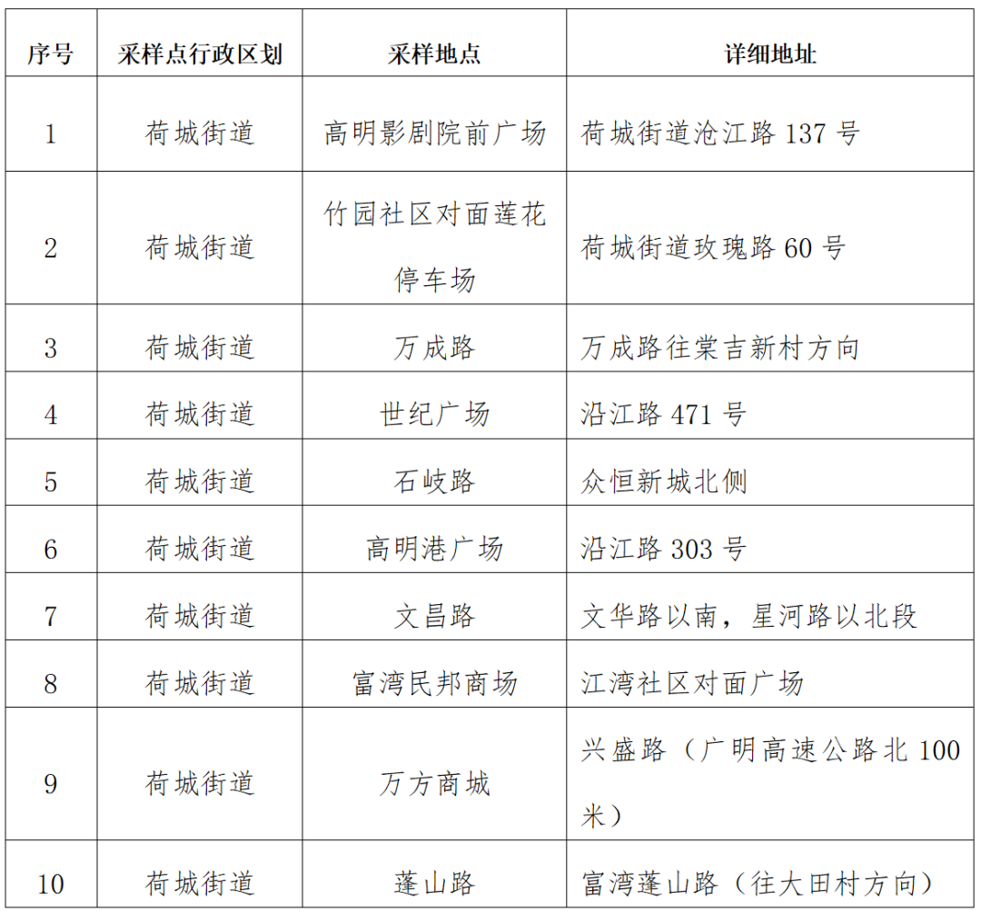 荷城街道重点区域共设置10个免费黄码核酸采样点,具体地点详见下表。