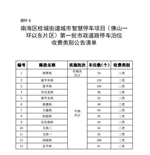 桂城街道已完成第一批共计920个市政道路停车泊位的智能化改造及调试工作,其中二类收费路段13条,2022年11月11日—12月31日实施试运行收费。