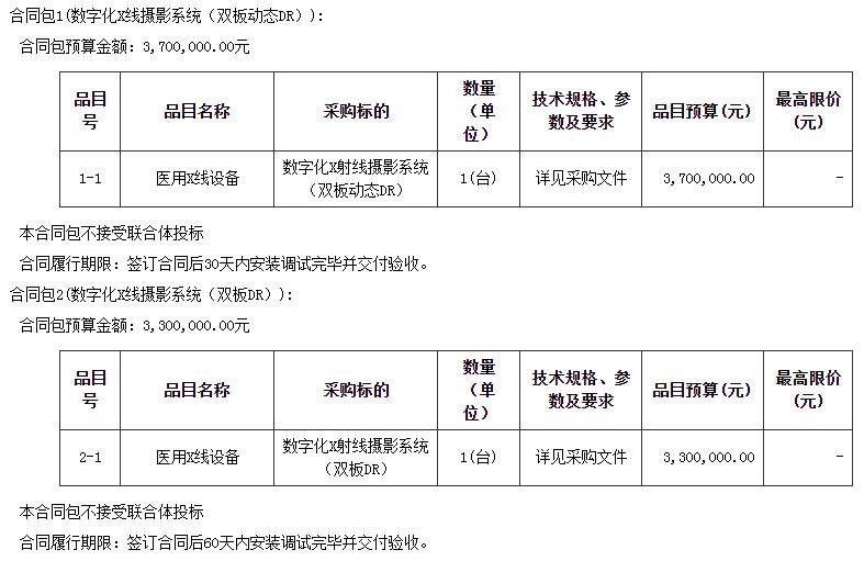 采购包1(数字化X射线摄影系统(双板动态DR)):人民币3,298,000.00元;