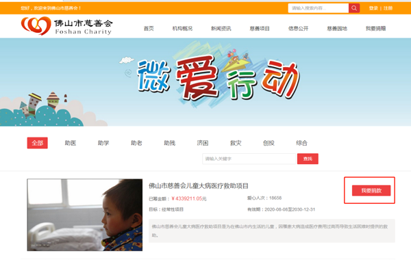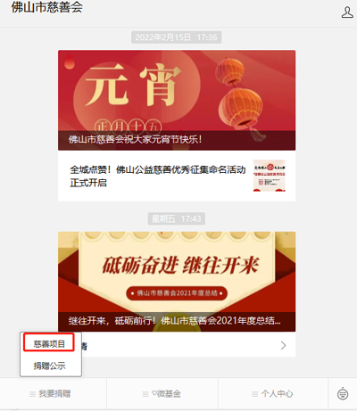 2、点击菜单栏【我要捐赠】-【慈善项目】;