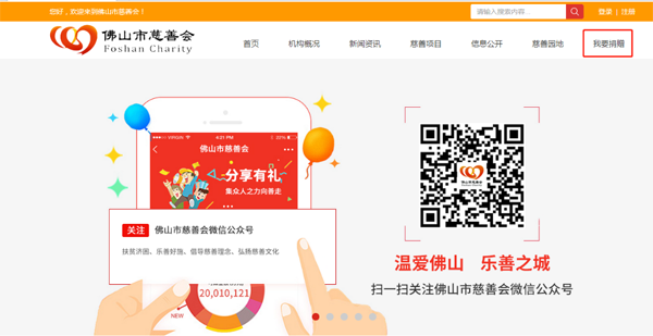 1、输入佛山市慈善会官方网址:https://www.fsscsh.org.cn/,点击右上角“我要捐赠”;