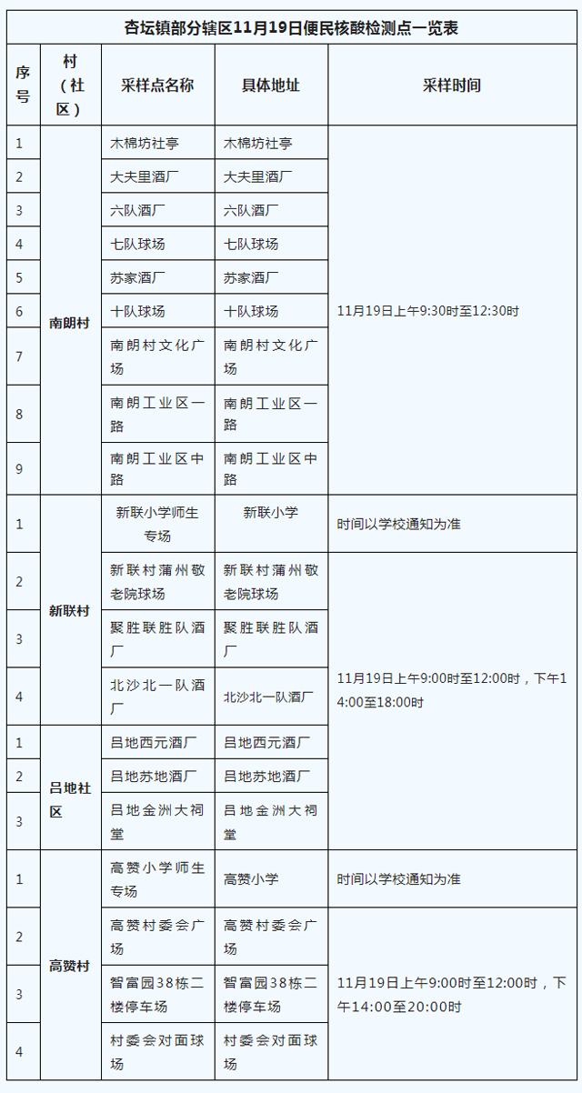 3.高赞村采样时间:11月19日上午9:00至12:00时,下午14:00时至20:00时;