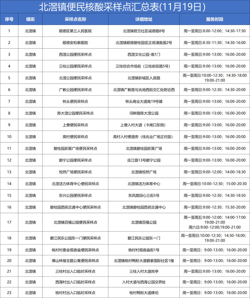 4. 此外,北滘镇便民核酸采样点11月19日、20日正常开放,详见附图。