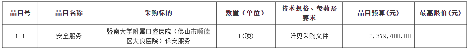 项目名称:暨南大学附属口腔医院(佛山市顺德区大良医院)保安服务