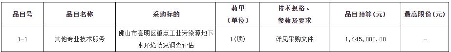 合同包1(佛山市高明区重点工业污染源地下水环境状况调查评估项目):