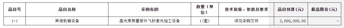 高光束质量紫外飞秒激光加工设备招标项目的潜在投标人应在广东省政府采购网https://gdgpo.czt.gd.gov.cn/获取招标文件,并于 2022年12月15日 09时00分 (北京时间)前递交投标文件。