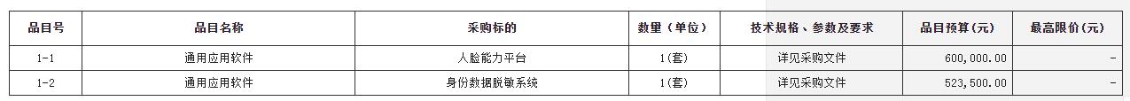 品目号 品目名称 采购标的 数量(单位) 技术规格、参数及要求 品目预算(元) 最高限价(元)