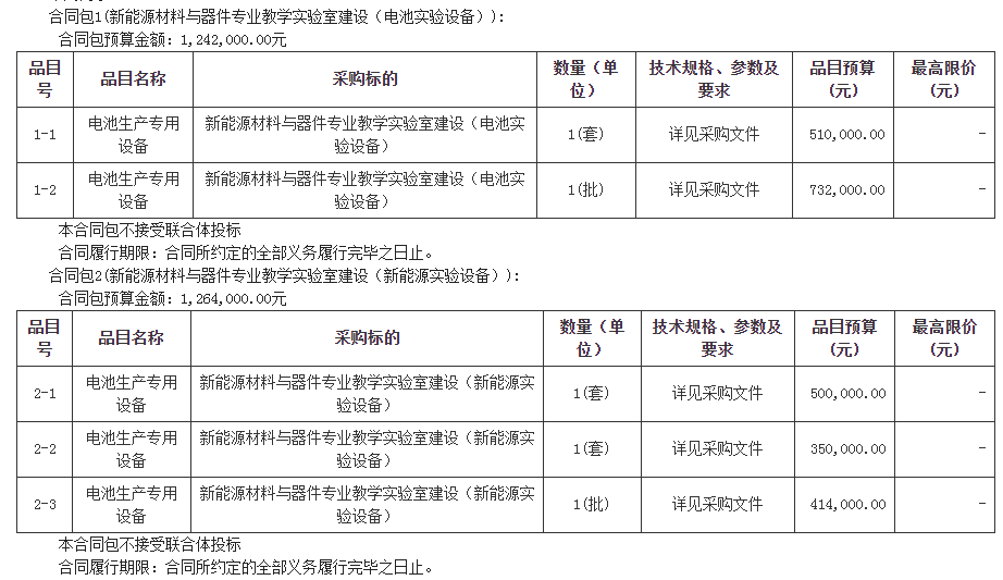 合同包1(新能源材料与器件专业教学实验室建设(电池实验设备))特定资格要求如下: