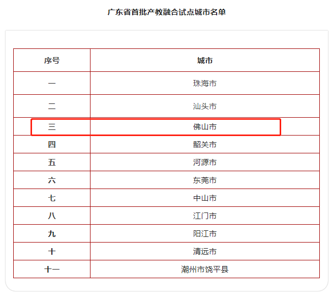 日前,广东省发展改革委公布《广东省首批产教融合试点城市名单》,佛山入选。