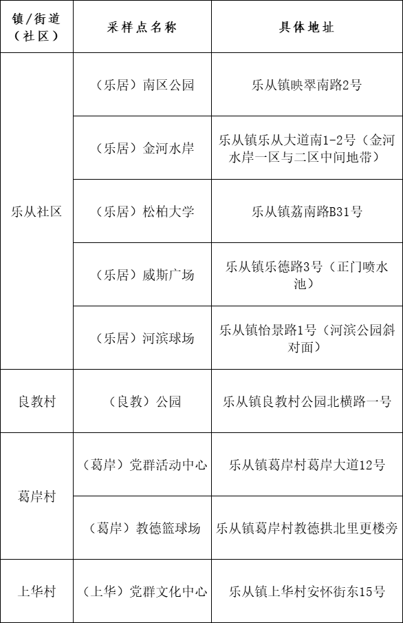 为切实保障全镇群众的身体健康,结合当前疫情防控需要,乐从镇于2022年11月24日(星期四)下午开展乐从社区、良教村、葛岸村、上华村免费核酸检测【相关便民核酸采样点详见下文列表】。现将有关事项通告如下: