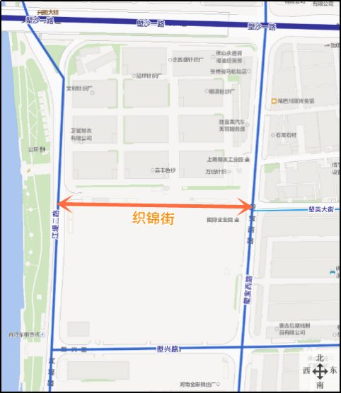 织锦街:位于张槎街道,东至塱宝西路、西至江堤二路,东西走向,道路全长约271米,道路宽度为15米,城市支路。