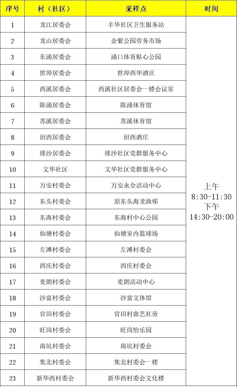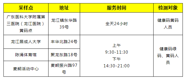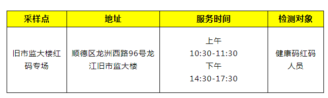 被赋黄码人员还可以到乐从体育馆黄码免费采样点检测: